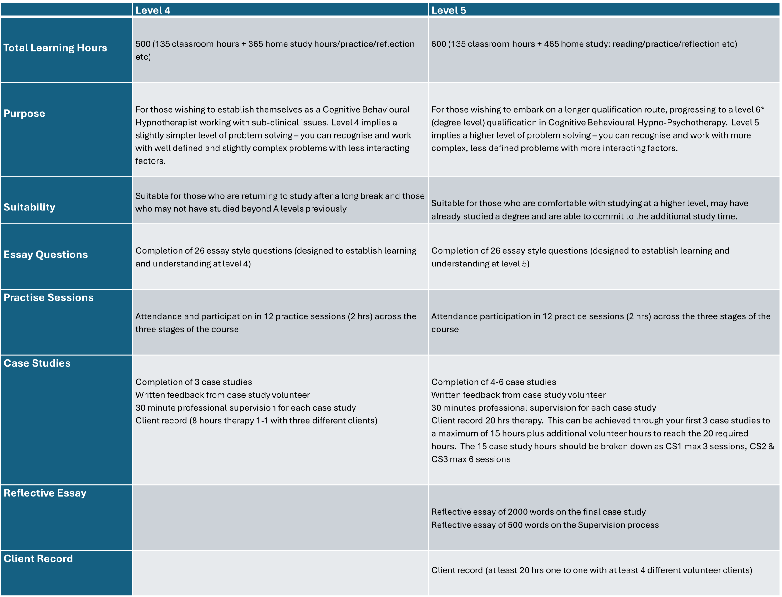 Please note this is the only Level 5 Higher Diploma in Hypnotherapy in the United Kingdom and represents a new standard for foundation practitioner training in hypnotherapy.